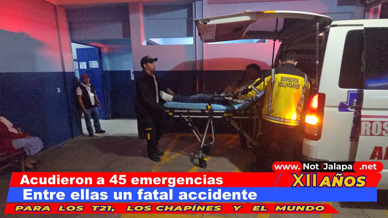 Los hombres del casco negro el pasado fin de semana acudieron a 45 emergencias, entre ellas accidentes de tránsito, personas atropelladas, incendios, enfermedad común y maternidad, según lo dio a conocer Manolo Sierra portavoz de Bomberos Voluntarios. MIRA: Deberá responder por el delito de extorsión en un juzgado de la ciudad capital Entre las emergencias que se reportaron está: un accidente de tránsito en la ruta que de Jalapa conduce al municipio de Monjas, en donde atendieron a Josué Aragón; de 17 años y Rafael López Gómez; de 19, el…